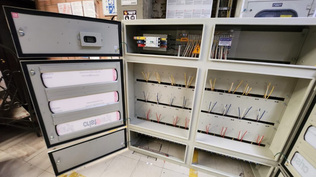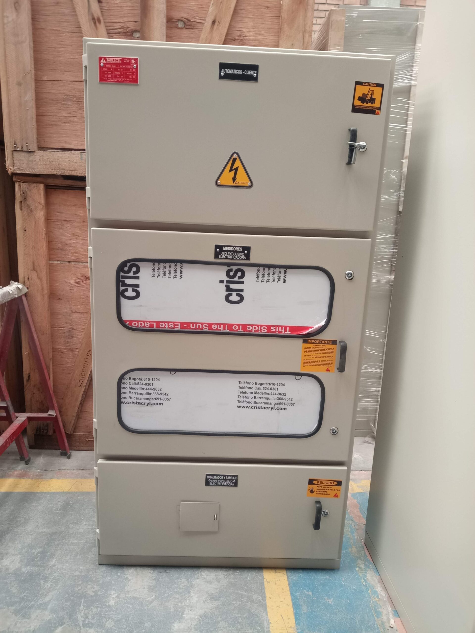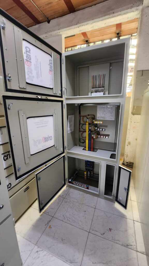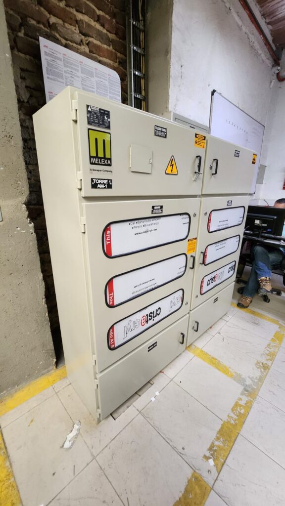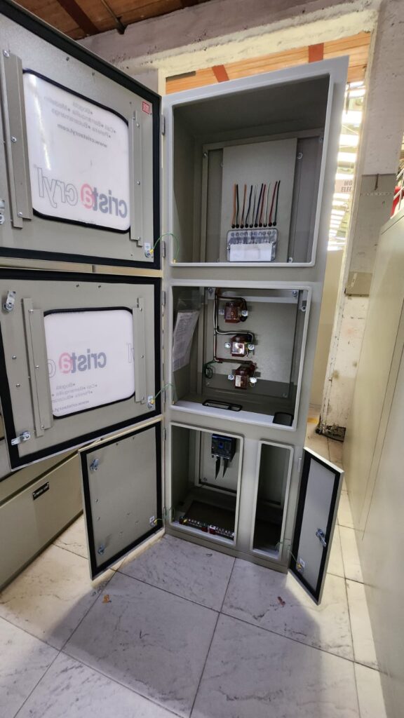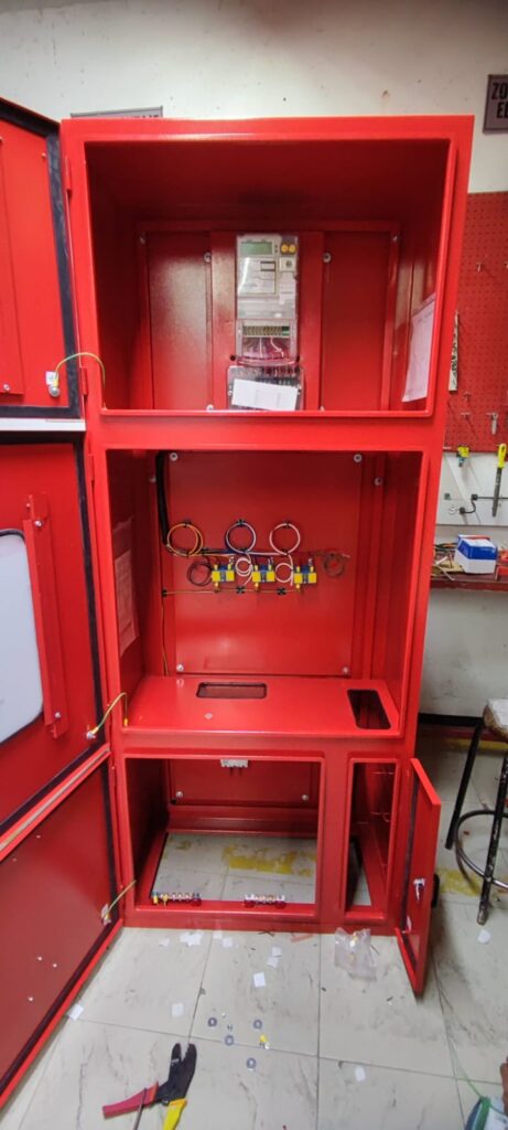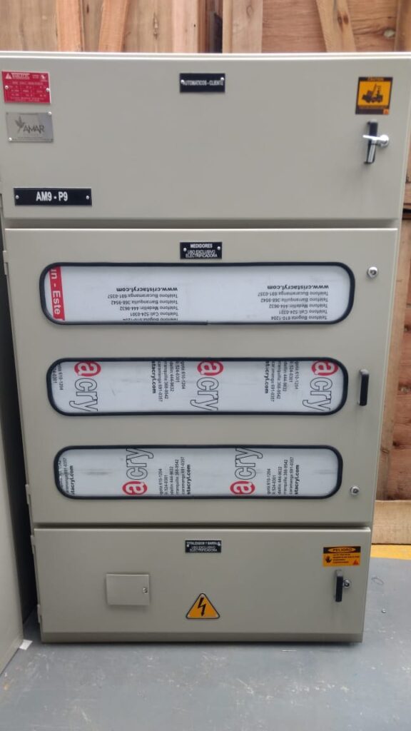 Los armarios de medición de energia en BT indirecta normal y bomba contra incendios son usados en instalaciones industriales, comerciales y residenciales, alberga totalizador, medidor electronico y transformadores de corriente, cuenta con puertas con ventanas con policarbonato transparente para proteccion y cerraduras porta sellos; adicionalmente el barraje se encuentra aislado por lamina de acrilico transparente.